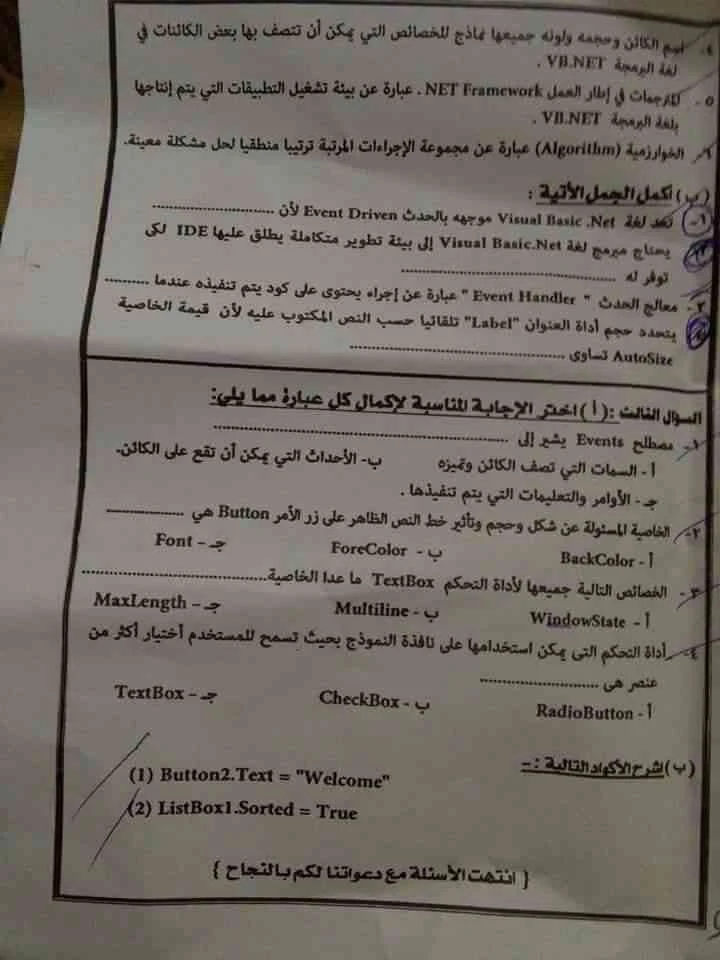 ليلة الامتحان ، والأسئلة المتوقعة في امتحانات المواد المختلفة ، نقوم كذلك بنشر